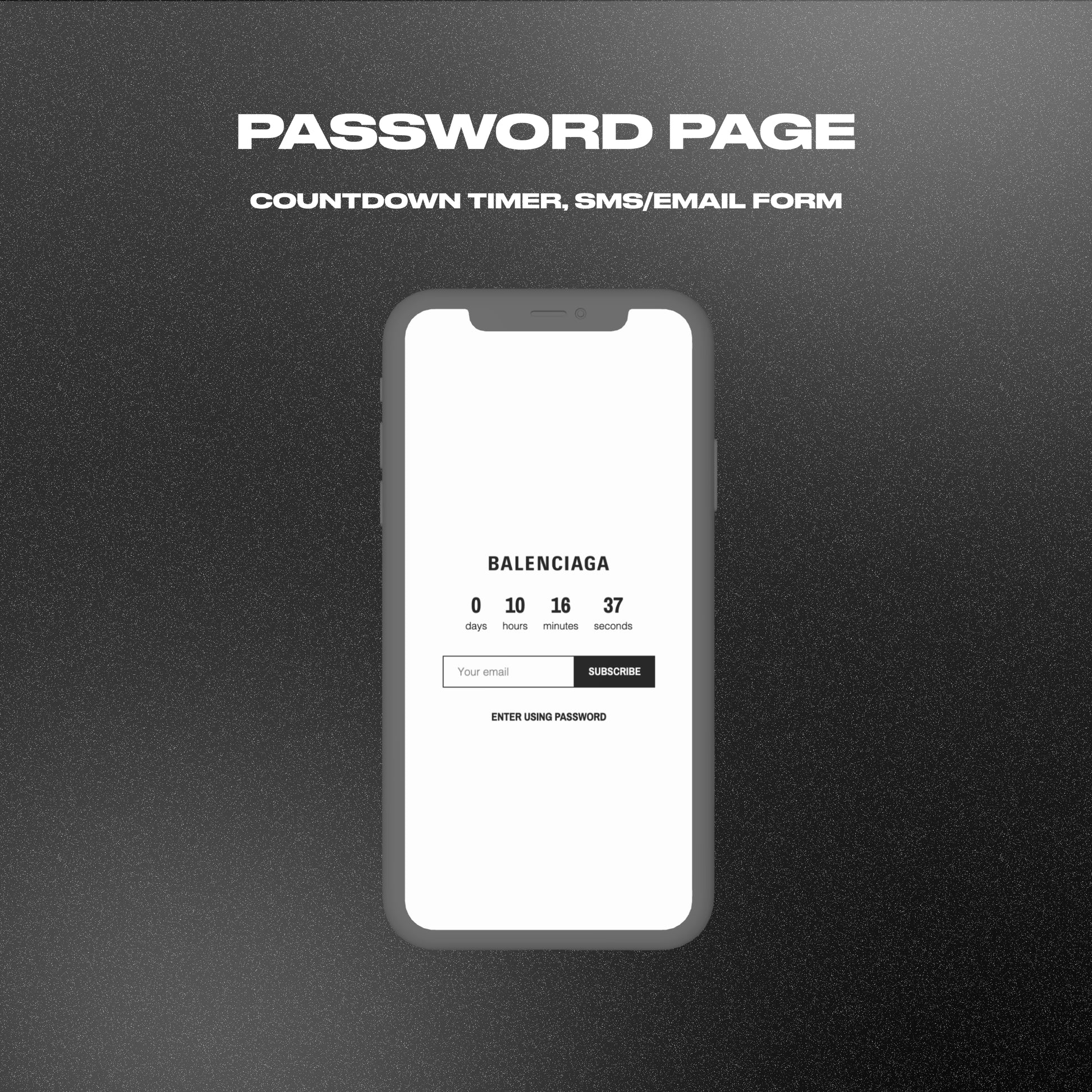 PASSWORD PAGE: Countdown timer, email or SMS form